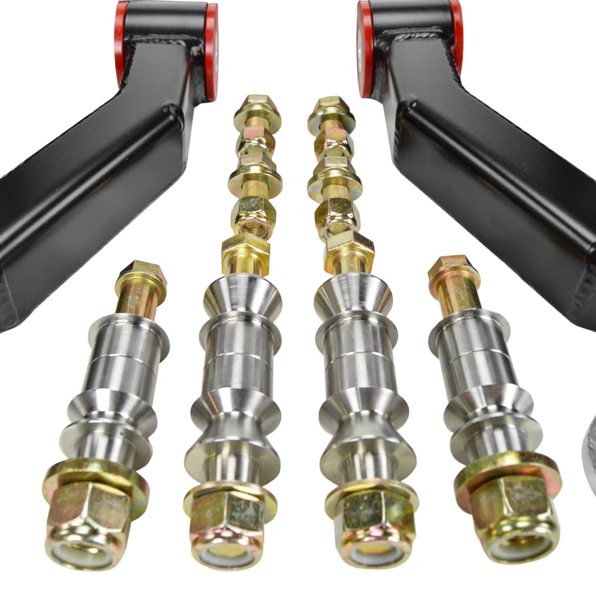 The Dirt King long travel kit was developed to drastically improve the vehicles off-road handling without compromising its day to day driving characteristics. This suspension system allows for 13.5” of travel and accepts up to a 35” tire. The kit is compatible with 2WD models and 4WD models along with the purchase of extended axle shafts. Our upper and lower arms are designed with 1” stainless steel uniballs for the outer pivots instead of ball joints for strength and increased articulation. Compared to the competition we’ve gained several inches of ground clearance by mounting the lower arms in the factory location instead of below it. This kit is CAD designed, thoroughly tested, and 100% made in America resulting in a product we’re proud to put our name on!