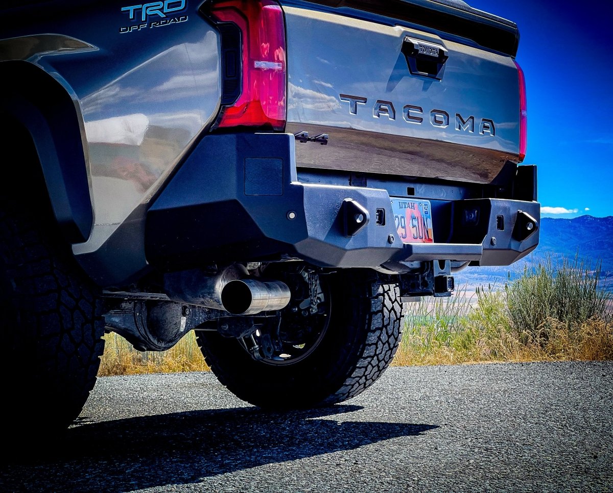 The RangeMax rear bumper for the 2024+ Toyota Tacoma offers heavy-duty protection and enhanced functionality for the truck’s rear end. Built from robust 3/16″ steel, it replaces the stock rear bumper with a well-engineered steel structure that balances durability with practicality. With a relatively light total weight (about 90 lbs), this bumper provides protection without overly penalizing payload or ride quality.