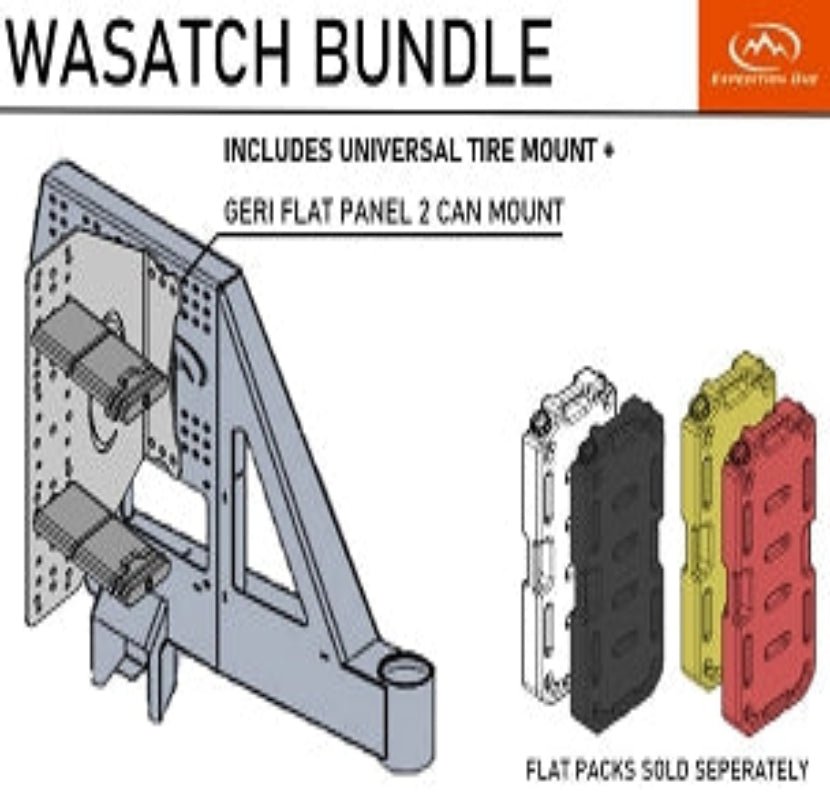 • Wasatch - 1x Universal Tire Mount, 1x Geri Flat Panel Dual Can Mount (Mount+Latches Only)