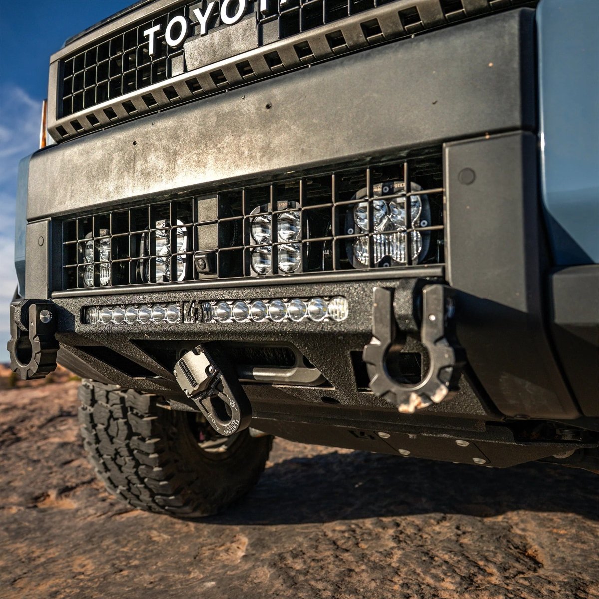 The C4 Fabrication Front Lo-Pro Winch Bumper for the Toyota Land Cruiser (2024+) is designed for off-roaders who want increased capability without compromising the clean, modern aesthetic of their new Land Cruiser. This bumper offers exceptional approach angle, protection, and customization potential while retaining key OEM features.