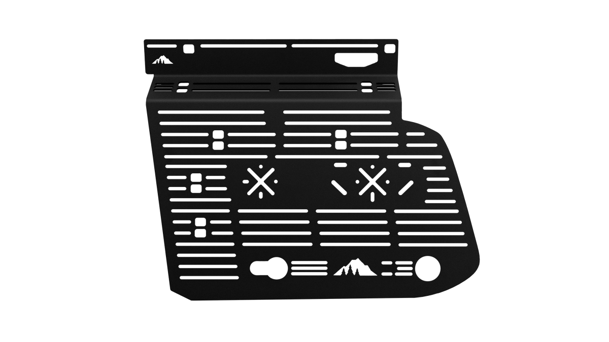 The Sherpa Window Panel offers a rugged, no-drill solution to turn your rear-side window area into a functional gear-mounting surface. Fabricated from 3⁄16″ aluminum, this lightweight yet strong panel mimics the glass contour, giving it a stealthy, integrated look. It bolts to the Atlas rack at the top and uses suction cups at the bottom for secure attachment—no cutting or permanent modifications required.