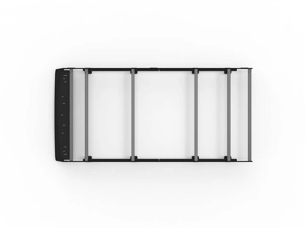 Equipped with adjustable T-slot-compatible crossbars, this rack transforms your van into a flexible cargo platform—ready for solar panels, decking systems, light mounts, or rooftop tents. The included wind fairing provides streamlined airflow and a hidden mounting surface for future light bar installations. Flatline’s ecosystem ensures accessories bolt on quickly without fabrication.