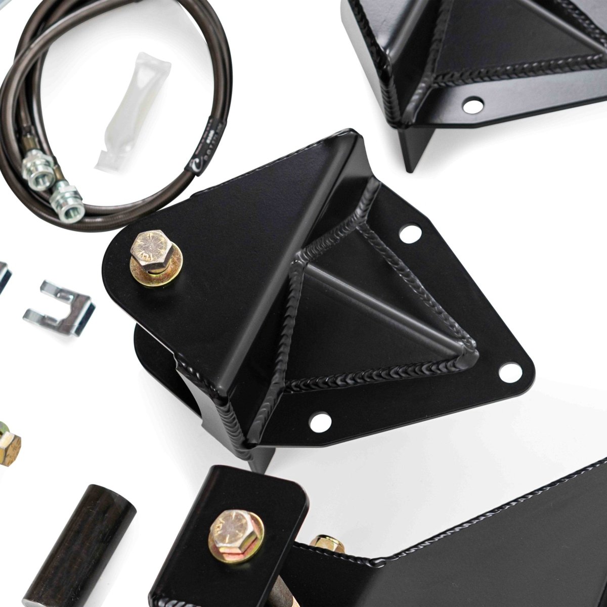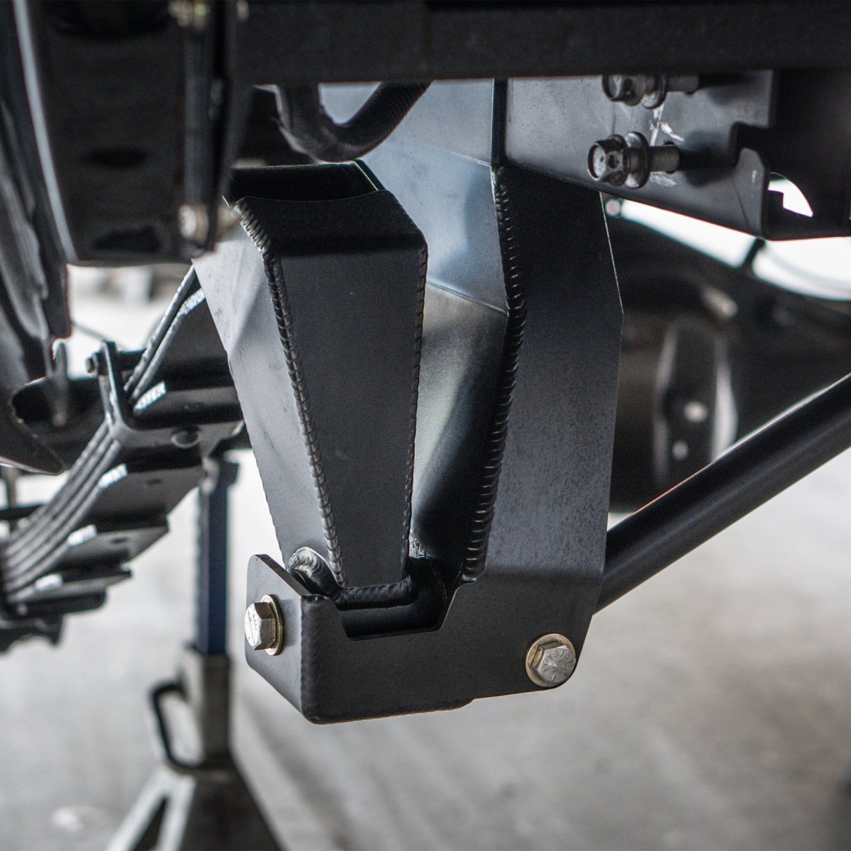 The long travel spring under kit was designed for maximum rear suspension performance without making the installation difficult for average person. For best results this kit should be combined with the Dirt King bedcage and Deaver H70HD leaf under springs. The complete package paired with a custom drive shaft allows for 18" of usable travel. The factory drive shaft can be retained but will limit 2" of down travel. Even with the 2" travel loss it still achieves a respectable 16" of wheel travel.