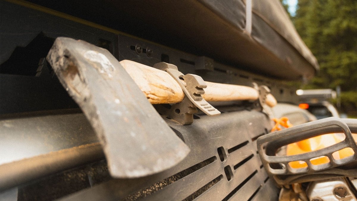 The window panel is perfect for anything that can be bolted or strapped down including recovery gear, fuel containers, water containers, shovel, ax, first aid kit, and much more. This product works flawlessly for those who have a rooftop tent installed on their Sherpa rack and need a convenient spot for some crucial accessories.