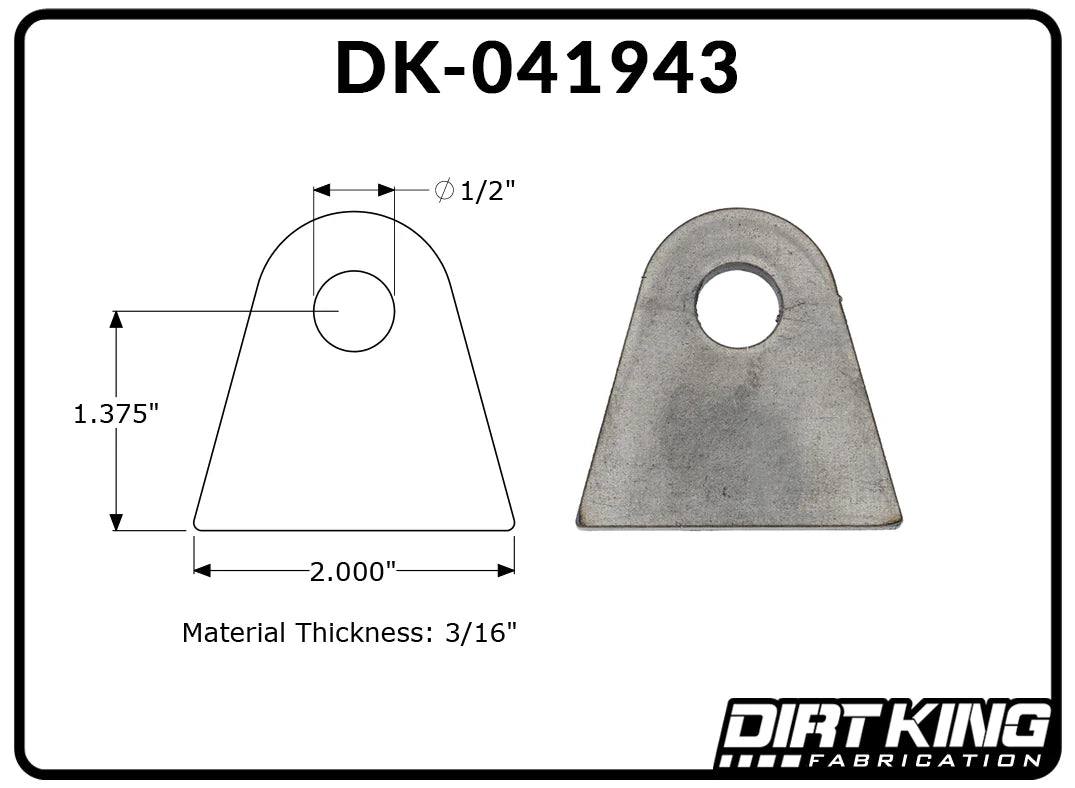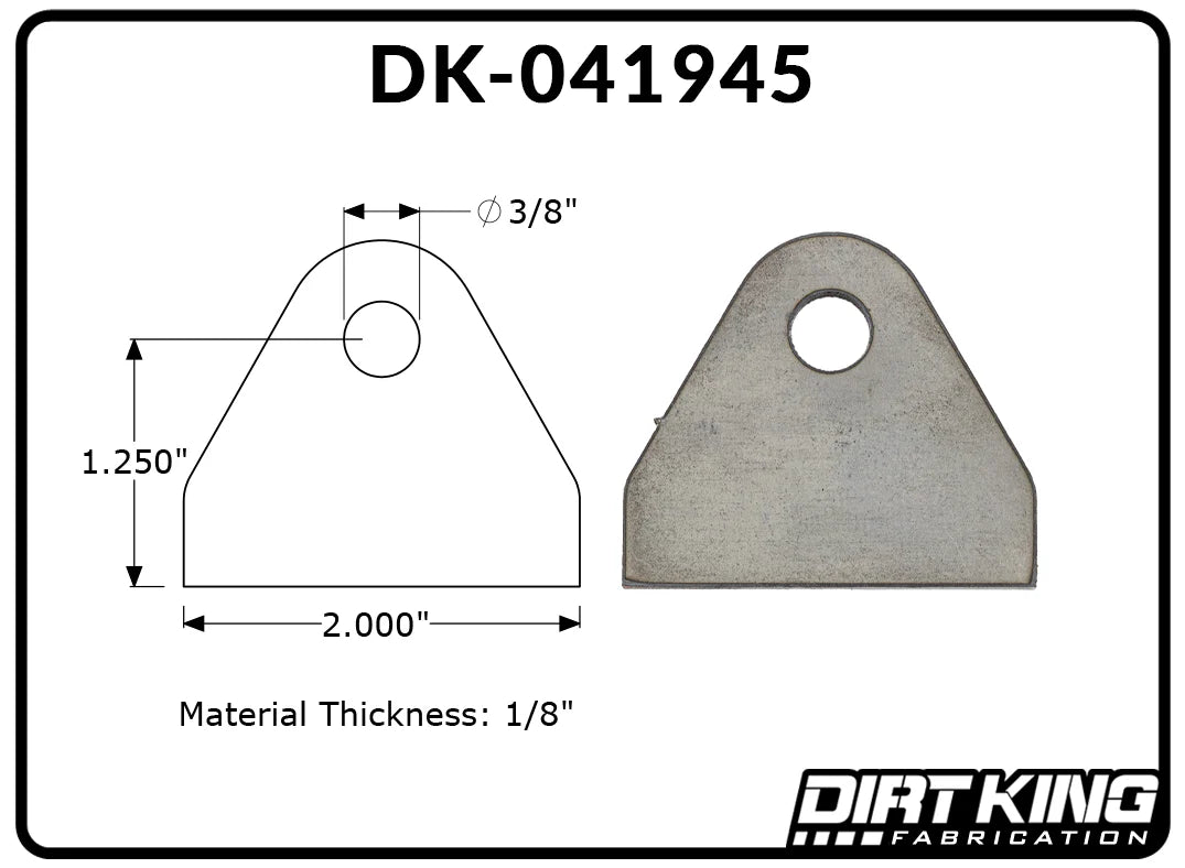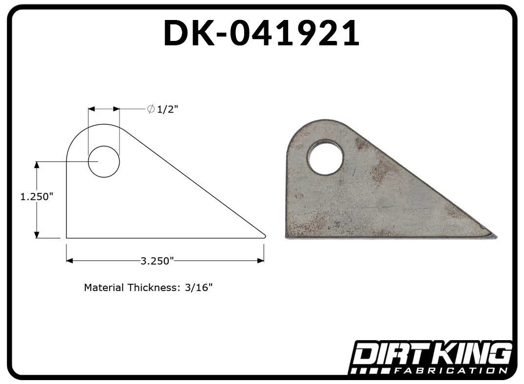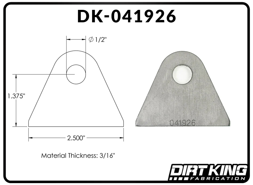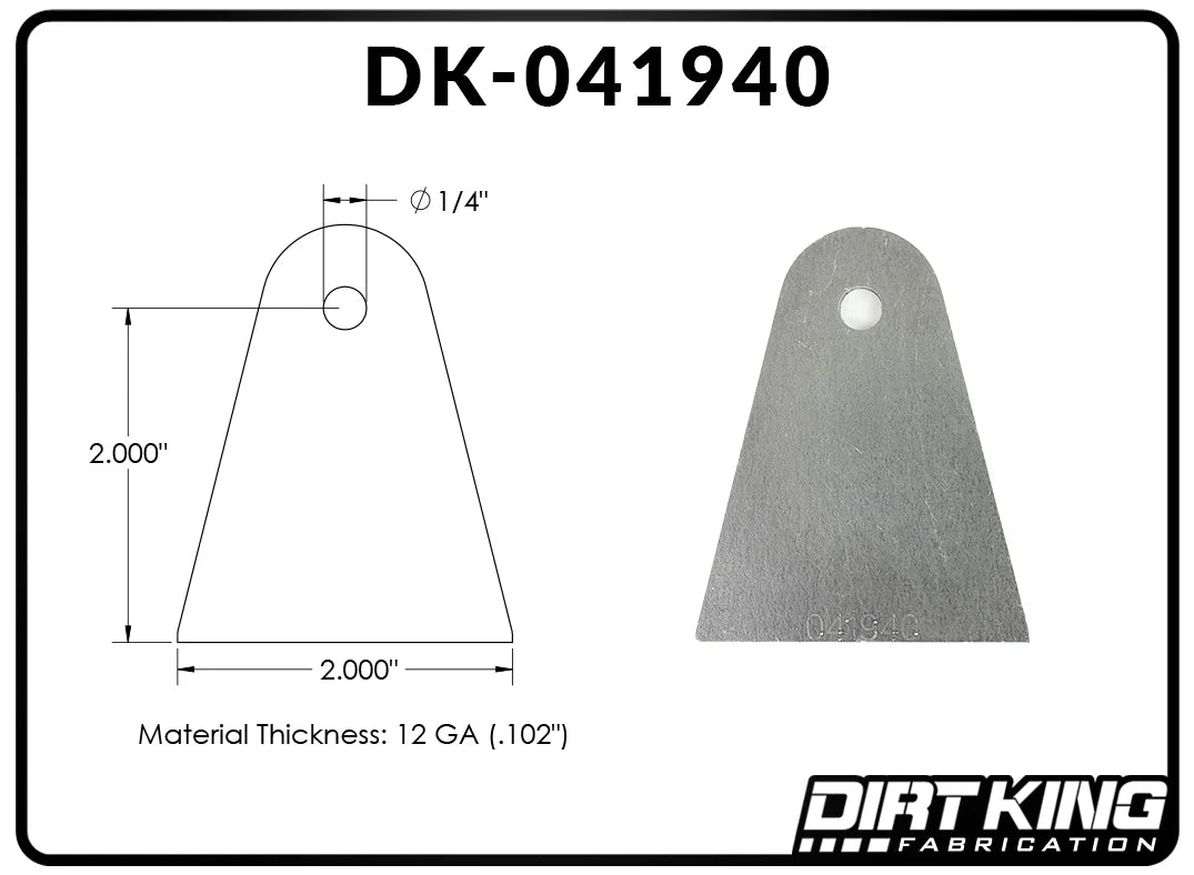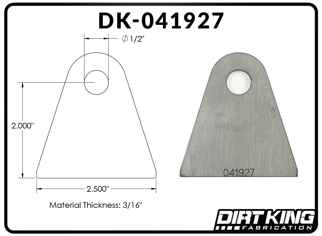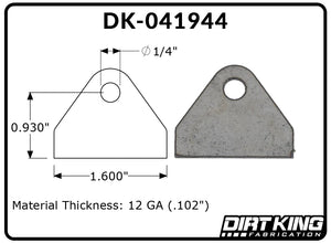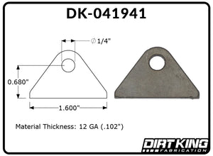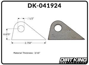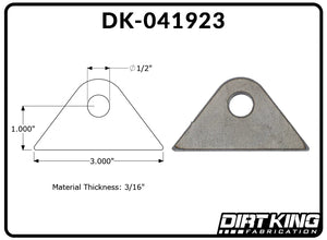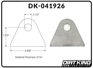 Dirt King Flat Tabs provide a durable and reliable solution for custom fabrication projects, offering a strong mounting point for various off-road and suspension applications. Laser-cut from high-quality mild steel, these tabs ensure precise fitment and easy welding, making them an essential component for builders and fabricators.
