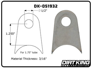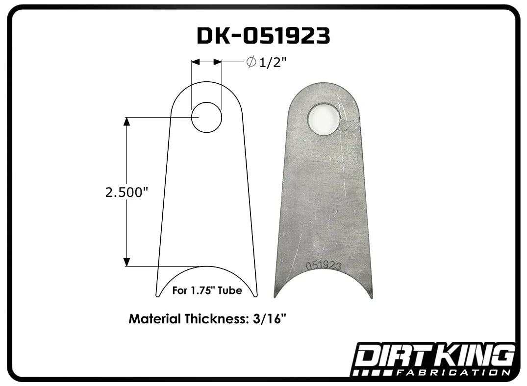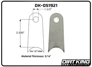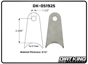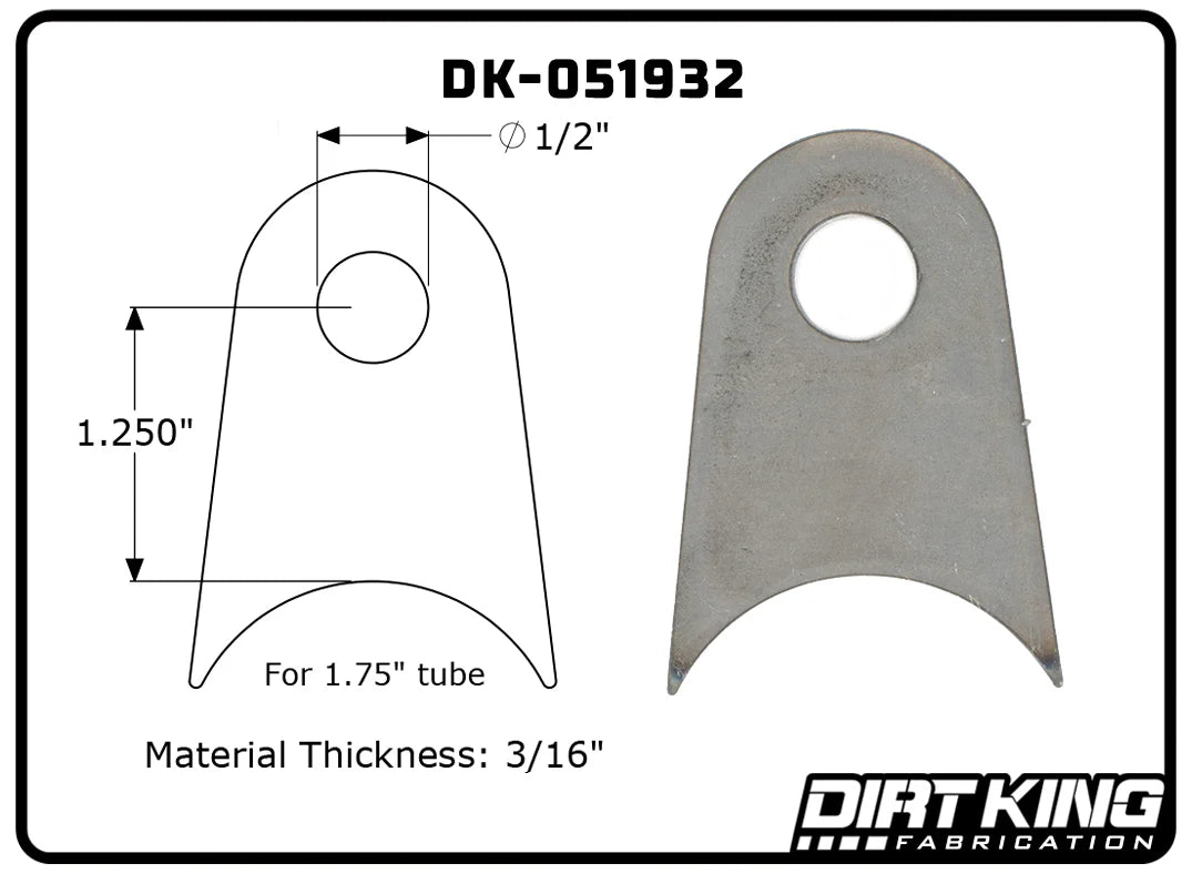 Dirt King Radius Tabs provide a durable and reliable solution for custom fabrication projects, offering a strong mounting point for various off-road and suspension applications. Laser-cut from high-quality mild steel, these tabs ensure precise fitment and easy welding, making them an essential component for builders and fabricators.
