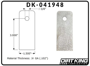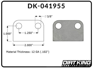 The Dirt King Specialty Tabs are precision-cut, weld-on mounts designed for secure and versatile attachment of suspension, chassis, and accessory components. Made from high-strength steel, these tabs provide exceptional durability and can withstand extreme off-road conditions. Their universal design allows for custom fabrication, making them ideal for suspension links, bump stops, limit straps, and other mounting applications. Engineered for strength and reliability, these tabs ensure secure attachment points while maintaining proper alignment in high-stress environments. Perfect for custom builds and off-road fabrication, they deliver long-lasting performance and dependable fitment.